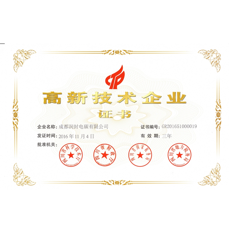 成都润封电碳有限公司地处四川成都新材料产业功能区,占地面积50多亩,是一家专业从事碳-石墨材料及制品的研究、制造、销售及服务的国家级高新技术企业,公司注册资金2000万元。